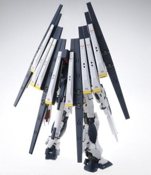 The MG 1/100 Double Fin Finnel Expansion Set combines with the MG Nu Gundam Ver. Ka, due out December 15th, to mount an extra six fin funnels on its right shoulder and recreate the Double Fin Funnel loadout.