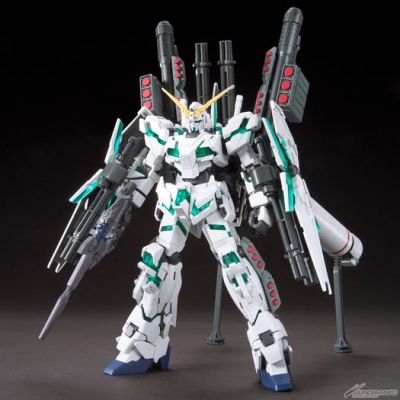 The Full Armor Unicorn Gundam from Mobile Suit Gundam UC episode 7 comes to HGUC! Its Psycoframe is built in clear green! Stands are included for all three of its shields, for a display only possible in model form!