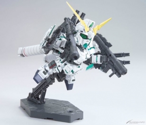 The Full Armor Unicorn Gundam from Gundam Unicorn arrives in BB Senshi form, complete with transformation from Unicorn to Destroy mode. Its Full Armor loadout includes large boosters and anti-ship missile launchers!