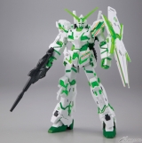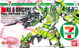 Its "RX-0 Unicorn Gundam" is recolored to match 7-Eleven's colors, complete with exposed Psycoframe parts in clear green. The kit also includes a set of marking stickers and foil color stickers in 7-Eleven's coors..