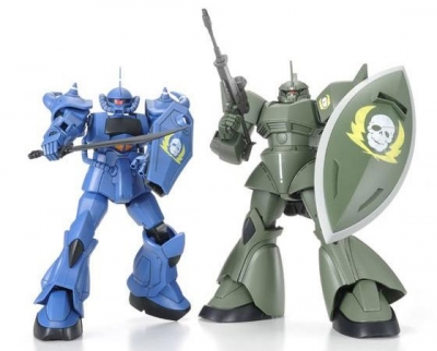 The "HGUC Gouf & Gelgoog [Visch Donahue's Custom]" Gouf and Gelgoog kit set are molded in the custom colors of the "Desert Thunder" Visch Donahue.