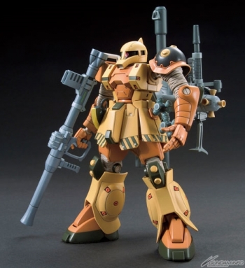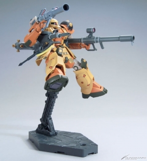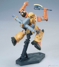 The Zaku I which dueled Mobile Suit Gundam Thunderbolt's Full Armor Gundam gets the HG treatment! Mount added leg parts after building to display its claws, or equip it with the Big Gun from the HG Zaku II + Big Gun set!
