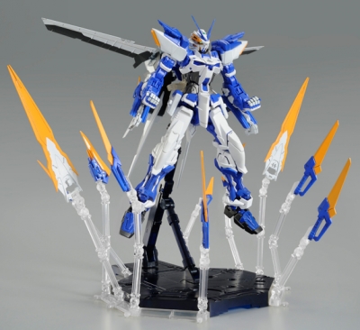 本アイテムは、11月店頭発売予定の「MG ガンダムアストレイ ブルーフレームD」の武装「ドラグーン」と組み合わせることで、空中にドラグーンを射出した2種類のイメージを再現可能なディスプレイセット。