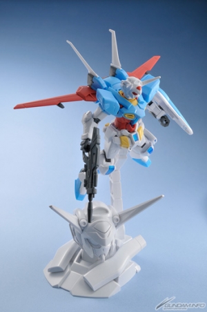 特徴的な頭部のデザインは、「HG ガンダム G-セルフ」の設計データを流用して1/48スケールで正確に再現。ディスプレイ用のアームは根元の回転軸とアーム中央付近、ガンプラ接続部の2ヶ所の角度変更機構により、様々な角度でガンプラを展示できる。