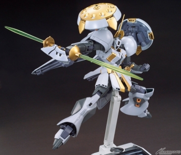 Kaoruko "Gyanko" Sazaki's fusion of the Gyan and R-Jarja from Gundam Build Fighters Try makes an HG appearance! Movable mounting arms for its shields allows for flexible positioning, and included parts let you mount it on the suit's arm! The kit's arsenal of weapons also includes beam effect parts!