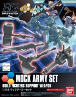 The Gundam Build Fighters Try-based Mock Army Set breaks through the normal limits of scale! The included Mock Heat Cutter, Mock Heat Axe, Mock Beam Gatling, and Mock Rocket Hammer can swap grips for use with 1/100 and 1/144 models, and the set also features parts for the "HG Hi-Mock"!