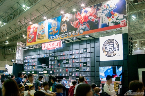 Bandai's booth featured Gundam Build Fighters Try Gunpla along with a lineup of the new 35th Anniversary REVIVE HG kits and over 200 Gunpla from the HG line's history. Visitors also had the chance to pick up the event-exclusive SDBF Star Winning Gundam PP Clear Ver. and more.