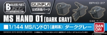 BUILDERS PARTS HD 1/144 MS HAND 01 (FEDERATION) DARK GREY August 1st, 2015 / ¥540 New Builders Parts HD manipulators free your creativity! Molded in standard dark grey, they blend in easily without painting. Choose from clenched, open-palmed, and gripping options, with alternate backs and wrist joint parts!