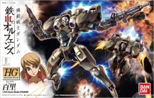 The Teiwaz syndicate's massive front-line "Hyakuren" suit from Mobile Suit Gundam: IRON-BLOODED ORPHANS is available in HG! Its side armor can be used as knuckle guards, and option parts include a blade and sheath. Its handheld rifle cannon is included too!