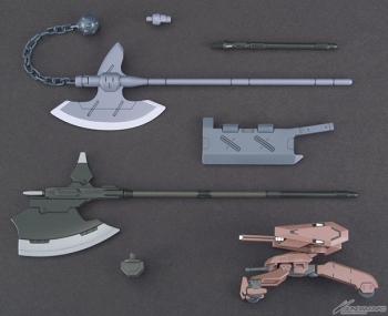 A third set from Mobile Suit Gundam: Iron-Blooded Orphans brings a new mobile worker and added melee weapons! Swap parts to extend or retract the blade of a standard halberd, or the Gusion Chopper and Gusion Axe of the HG Gundam Gusion! The set also includes a Gjallarhorn mobile worker seen in the raid on CGS in episode 1!