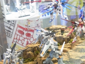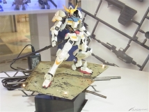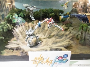 Visitors are first greeted by a 1/1 Gundam head. Inside, there are lineups of the latest Mobile Suit Gundam; Iron-Blooded Orphans kits, dioramas, prior Japanese Gunpla Builders World Cup champions, Gunpla Supporters designs by celebrities, and more.
