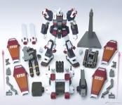 A new version of the Full Armor Gundam is molded in Mobile Suit Gundam Thunderbolt colors! Foil decal stickers round out the new coloration, and the box is redone as well! Its sub-arm extends to mount four shields, and all the new head, backpack, sealing, and foot details are there too! The set also includes a custom stand and booklet with full details on its emblems and other decals.