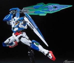 Mobile Suit Gundam 00 the Movie: A wakening of the Trailblazer's 00 QAN[T] is now available in RG! Realistic features borrowed from modern engineering include GN Drive mounts and an expanding shield. Its newly-designed arms use Advanced MS Joints just like the RG Exia, and it also comes equipped with GN Condensers. Its “bits” can be modified, with the GN Sword V displayable in either Bastard Sword or Buster Rifle mode.