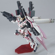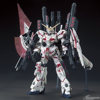 The red-framed Full Armor Unicorn Gundam (Destroy Mode) from Mobile Suit Gundam Unicorn RE:0096 comes to HGUC! Apart from the alternate Psycoframe color, it also has new markings designed by Hajime Katoki for RE:0096 and a new hyper beam javelin. Build it fully-armed with a range of option parts! A special shield gatling stand supports all three for display.