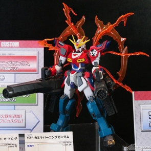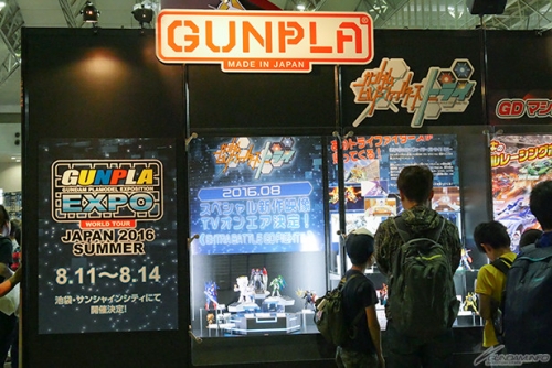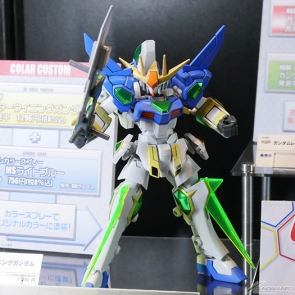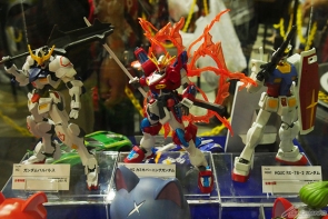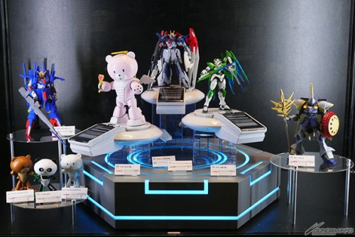 会場内のバンダイブースでは、8月にTV放送される『ガンダムビルドファイターズトライ』スペシャル新作映像より、「HGBF ベアッガイP(仮)」や「HGBF クアンタ改(仮)」をはじめとする登場ガンプラを展示。さらに、「HGBF」シリーズのガンプラが集結し、「ギャ イースタンウェポンズ」や「ザ ノーザンポッド」などの「HGBC」シリーズを使ったカスタマイズ作例もディスプレイされていた。