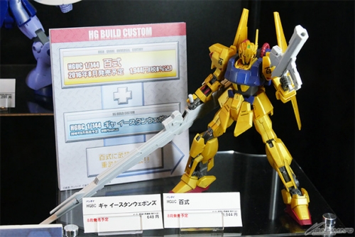 ▲2016年8月発売予定「HGUC 百式」(税込み1,944円)を、同じく8月発売予定「HGBC ギャ イースタンウェポンズ」(税込み648円)でカスタマイズ!
