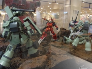 ▲今後発売が予定されている新作ガンプラを多数展示!