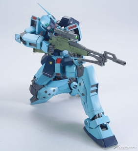 From “Mobile Suit Gundam 0080: War in the Pocket”, finally the Scarlet regiment’s pride, the elite MS “GM Sniper II” has a Master Grade (MG) version. The hips section has a new moving gimmick, while there is an expansion on the extent of movement of the shoulder. In addition, there is a special sniping pose for the right wrist. It comes with an opening-closing gimmick for its head visor, as for the sensor types, they are all made with clear parts. A new design implements the 75mm sniper rifle, the bullpack machinegun and the shield.