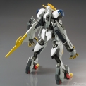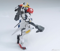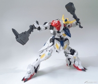 『機動戦士ガンダム 鉄血のオルフェンズ』第2期より新たな主人公機「ガンダム・バルバトスルプスレクス」が、HGシリーズで最速立体化。巨大な前腕部、頭部アンテナなど獣のようなシルエットを新規パーツで忠実に再現。腕部内蔵のサブアームは展開可能で、着脱可能な背部武装は、リード線により攻撃状態にもできる。グリップが伸縮可能な超大型メイスも付属。