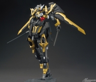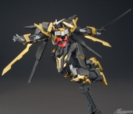 公式外伝「ビルドファイターズA-R」に登場するガンダムシュバルツリッターがHGBFでキット化。カテドラルガンダムからディナイアルガンダムへのミッシングリンクが明らかに。特徴的なバックパックは、左右のウイングと腰にマウントしているグリップパーツを組み合わせることで片刃剣に変形。また、左右のウイングをあわせると巨大な剣にも変形ができる。