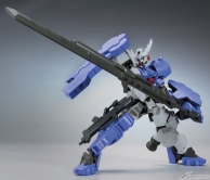 公式外伝『機動戦士ガンダム 鉄血のオルフェンズ 月鋼』第2期の新たな主人公機がHG化。特徴的な左右非対称のデザインを新規パーツで再現。「デモリッション・ナイフ」と合体し、大型武器への変形も可能な「バスタードチョッパー」や、大型手甲は新規造形。サブアームは展開式でライフルを装備させることもできる。