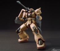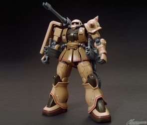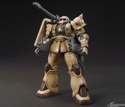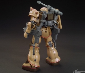 「機動戦士ガンダム THE ORIGIN MSD」より、ザク・ハーフキャノンが初HG化。特徴的な背面武装は、キャノン砲とバルカン砲の選択式となっており、装備が異なるバリエーション機をパーツの選択で再現可能。バックパックに接続し装備できるビッグ・ガン2丁など多彩な重火器に加え、接近専用の武器ヒート・ホークは手持ち用と携行用が付属する。