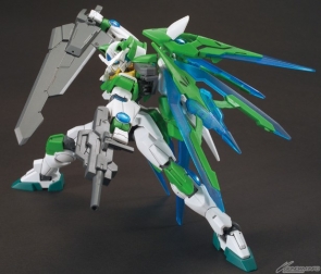 「ケルディムガンダムサーガ」がビルドファイターズ仕様で登場。MSのコンセプト“セブンガン”にあわせて7つの銃が付属し、頭部センサーの開閉などのギミックも再現。広い可動域により、ケルディムガンダムサーガが得意とする様々な射撃ポーズが可能で、「GNアサルトカービン」は両手で保持し、狙撃体勢のポージングも再現できる。