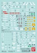 すべてのスケールで使用できる、汎用性の高い水転写デカールとなっており、RGシリーズより「シナンジュ用」、「MS-06R汎用①」、「ダブルオークアンタ用」に加え、「MG ジム・スナイパーII / ジム・コマンド用」、「THE ORIGIN汎用③」、「THE BLUE DESTINY汎用①」の全6種のデカールが登場。