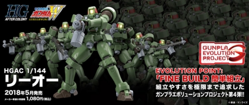 ガンプラ40周年に向けた「GUNPLA EVOLUTION PROJECT」の第4弾として、『新機動戦記ガンダムW』より「HGAC リーオー」が5月に発売されることが決定した。価格は1,080円(税込)。