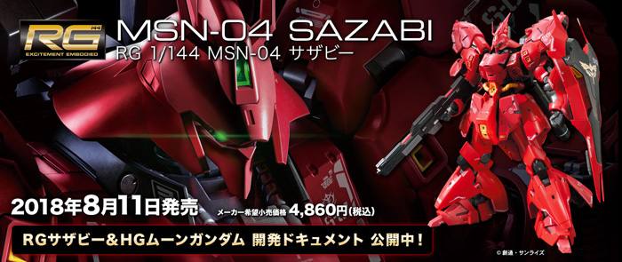 Sur le site de Bandai Hobby, chapitre premier de la "RG Sazabi & Documents de développement Gundam HGUC lune" sont maintenant visibles. Informations sur les détails et les gimmicks, amplitude des mouvements des épaules et des bras, et autres données sont données alors Let ' s go Vérifiez-le dehors.