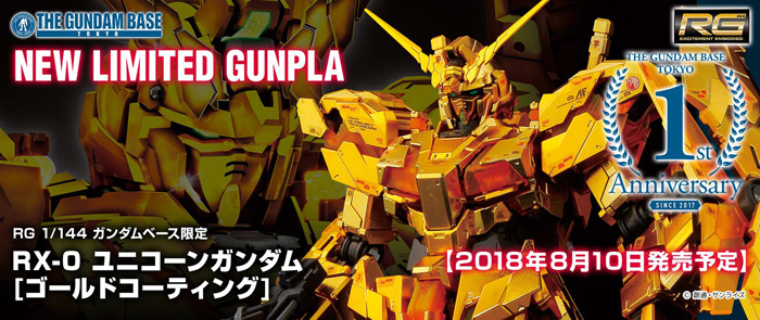 L’édition limitée Gundam Base Tokyo Gunpla "RG RX-Gundam unicorn 0 [Revêtement or]" a été libéré le 10 août, 2018 (Ven) à TOKYO de BASE GUNDAM situé au 7ème étage de "Plongeur ville Tokyo Plaza" dans Odaiba, Tokyo. Prix est ¥ 8,640 (TTC.)