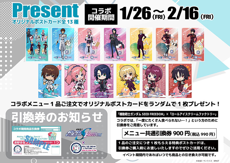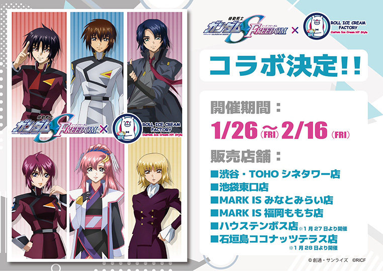 Mobile Suit Gundam SEED FREEDOMx ROLL ICE CREAM FACTORY Événement de collaboration