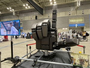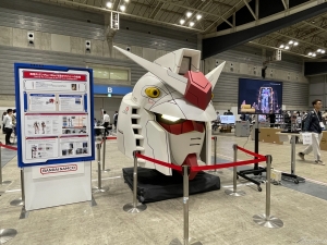Les parties de la tête et de la main du Moving Gundam grandeur nature étaient exposées sur place, qui a eu sa grande finale le dimanche 31 mars. L’exposition présentait les défis du déplacement d’un Gundam grandeur nature, ainsi que des panneaux et des vidéos expliquant sa structure.