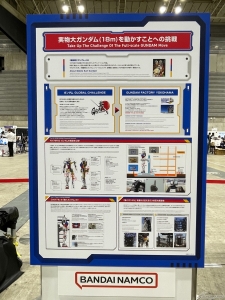 Il y avait aussi des panneaux expliquant les défis du déplacement d’un Gundam grandeur nature et de sa structure !