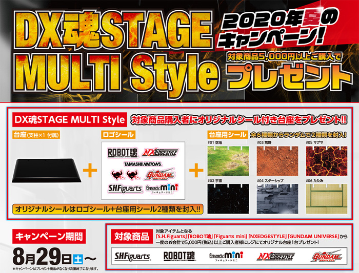 La marque de chiffre complète TAMASHII NATIONS sera associée à une campagne de bonus dans laquelle vous pouvez recevoir une base d’affichage MULTI-style du DX TAMASHII avec l’autocollant d’origine.