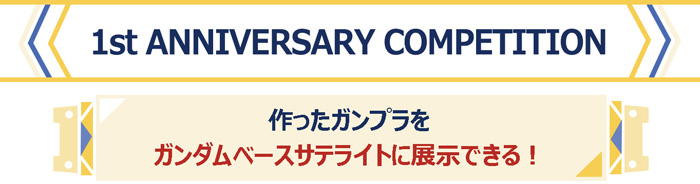 Un concours de 1er anniversaire où les visiteurs peuvent afficher leur GUNPLA à chaque magasin commencera également.Le thème de ce concours est "GUNPLA local" basé sur Nagoya et Kyoto, et au moins une section du kit doit être peinte.l’ion est « GUNPLA local » basé sur Nagoya et Kyot