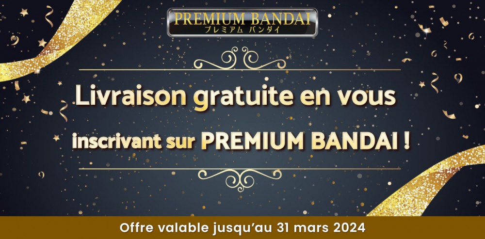 En créant un compte sur PREMIUM BANDAI avant le 31 mars 2024 vous pourrez bénéficier de la livraison gratuite sur un de vos achats.