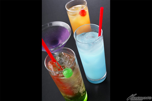Mobile Suit Gundam 00's four Gundam Meisters appear as cocktails. Setsuna F Serei and Lockon Stratos are virgin, while Allelujah Haptism and Tieria Erde are made with liquor.