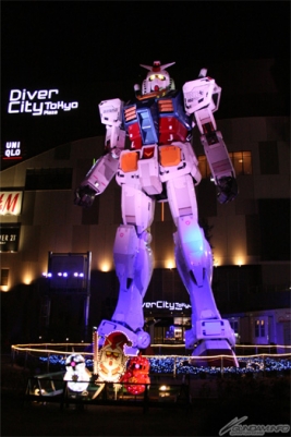 The 1/1 Gundam standing in Odaiba, Tokyo's Diver City Plaza will be lit for the holidays December 1st through the 25th.