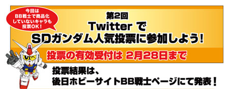 The Second Twitter SD Gundam Popularity Contest is now underway on the BB Senshi 25th Anniversary site.