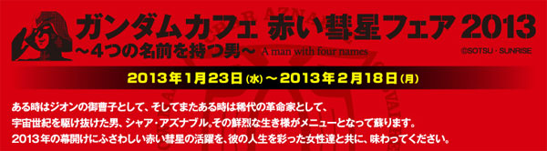 The Gundam Café in Akihabara, Tokyo begins its "Red Comet Fair 2013: The Man with Four Names" on January 23rd!