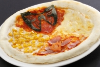 Enjoy a pizza with four flavors, one each for Casval Rem Deikun, Edward Mass, Char Asnable, and Quattro Bajeena.