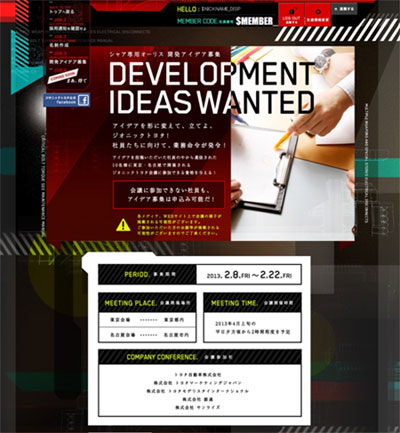 ジオニックトヨタの社員に当力し、ジオニックトヨタWEBサイト「アイデア募集キャンペーン」のページよりログインする。