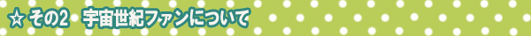 :そう。初期の作品が主に、時代の年号が宇宙世紀になるんだけど、宇宙世紀でなければガンダムじゃない!って言いきる人も多いのよ。