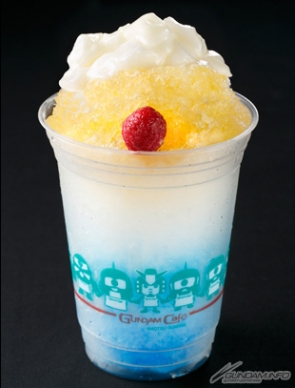 価格: 500円(税込) 暑い夏にぴったりのカキ氷登場!ガンダム立像を眺めながらヒンヤリしませんか?マンゴーシロップ&ヨーグルト&寒天をのせてガンダムをイメージしました。 |