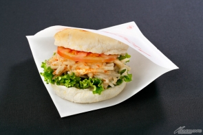 ピリ辛ごぼうサラダとトマトを挟んだボリューム満点のマフィン。
