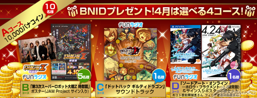 現在実施中の4月のBNIDプレゼントは4つのコースから選ぶことができ、JAM Projectメンバー全員のサインが入った「第3次スーパーロボット大戦Z 時獄篇」のポスターなど、豪華プレゼントが用意されている。応募受付は4月30日(水)23:59まで。