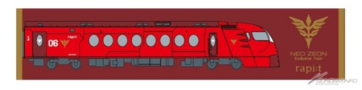 特急ラピートの車両外観を登場人物であるフル・フロンタル率いる組織「ネオ・ジオン」をイメージした赤色に変更するとともに、随所に「機動戦士ガンダムUC」の世界観を表したデザインを施します。