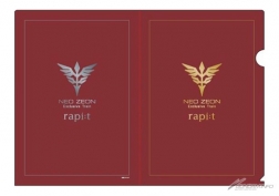ネオ・ジオンのロゴや特別塗装のラピートなどがプリントされたA4サイズのクリアファイル。(2枚1セット)