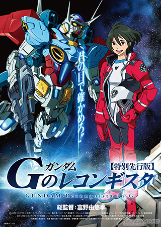 Gundam Reconguista in G, the long-awaited new Gundam series by director Yoshiyuki Tomino, will be previewed in 13 theaters nationwide for two weeks beginning August 23rd, and special promo fliers are now available at each participating theater.